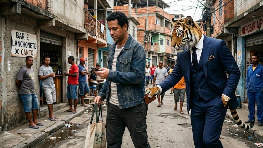 E se vê tomado de um tesão incontrolável ao assistir, na internet, um policial bater em um estudante que ocupou uma escola na periferia para protestar contra seu fechamento e, rangendo os dentes, pensa: "Vagabundo. Vai trabalhar!"…